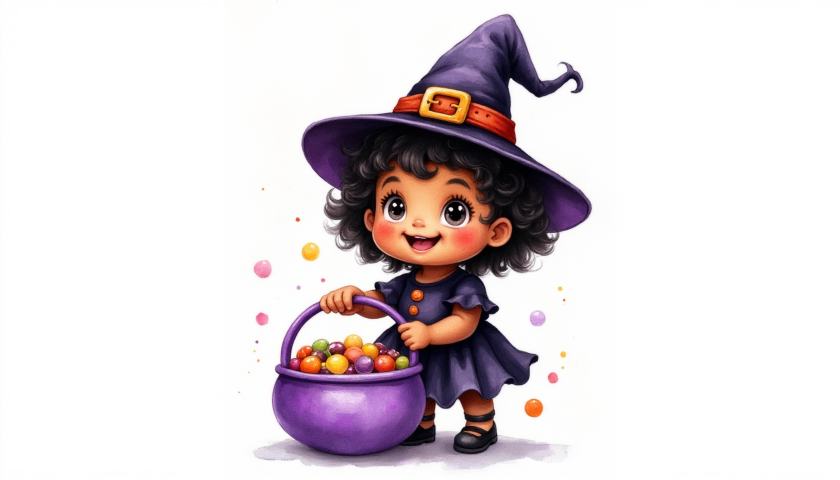 witch child with candy bucket