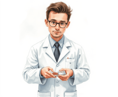 doctor with pills smiling