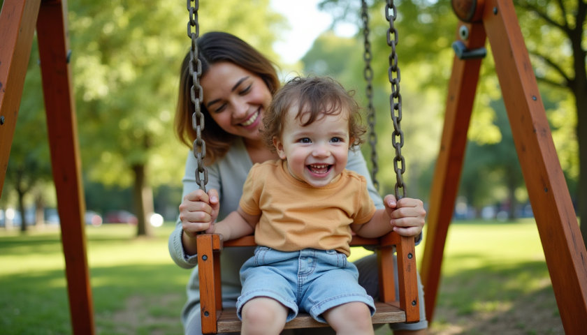 mom and child on swing park