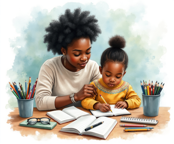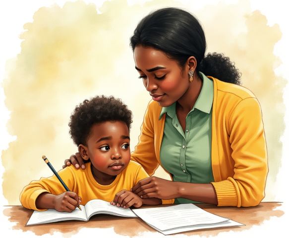 mother child studying