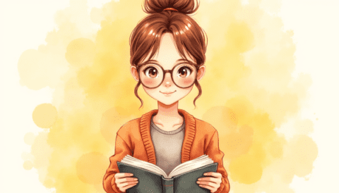 girl reading book illustration