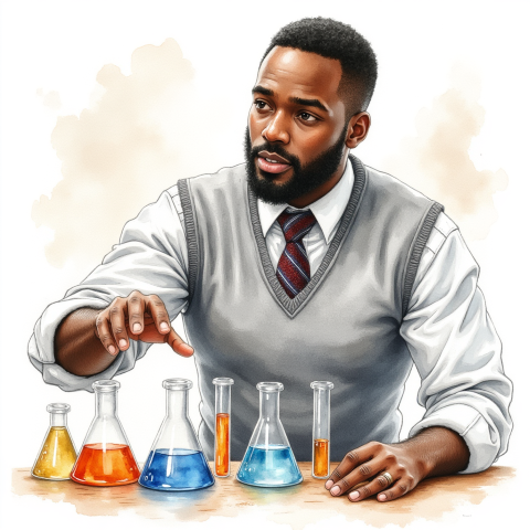 scientist with flask illustration