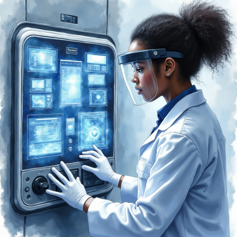 scientist interacting with technology