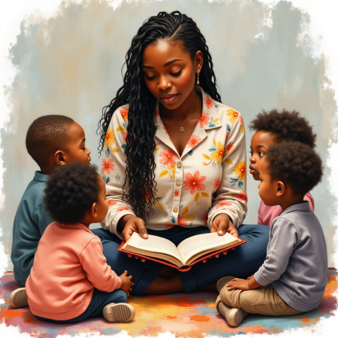 storytime with mother and children