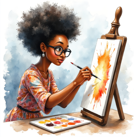 young artist painting watercolor