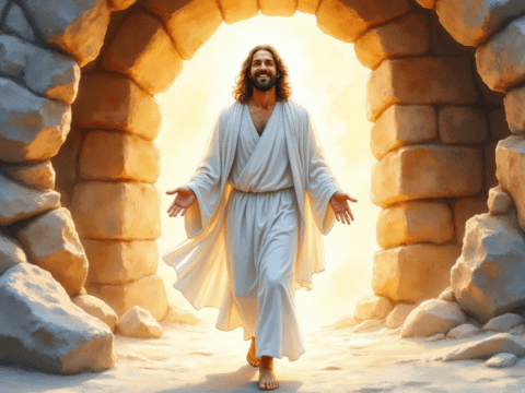 free clipart illustration of Jesus walking out of the tomb resurrection (3)