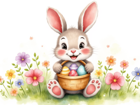 easter bunnies basket eggs flowers