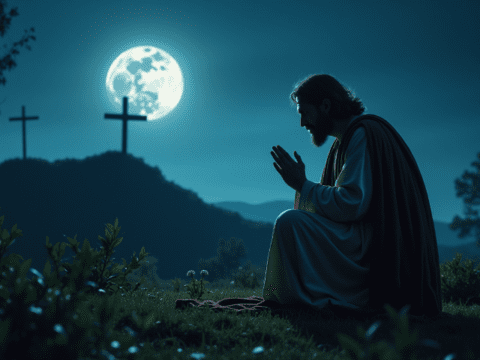 free clipart illustration of Jesus praying in Garden of Gethsemene (6)