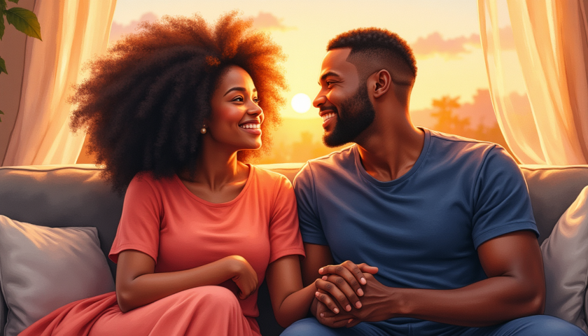 free clipart illustration of a black couple enjoying sunset at home (4)