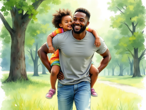 free clipart illutration of black father carrying his child on his neck (2)