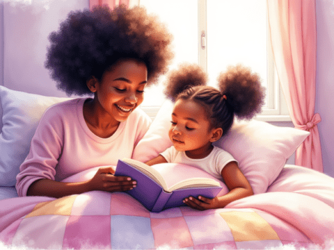 free clipart illustration of a black family spending time with their child at home (1)