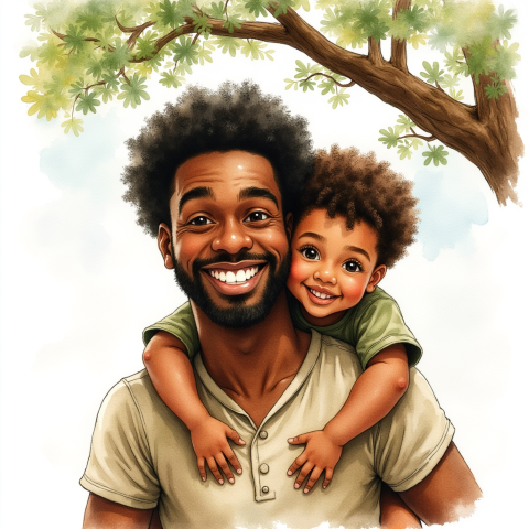 free clipart illustration of black father giving his child a piggy back ride