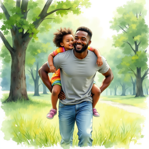 free clipart illutration of black father carrying his child on his neck (2)