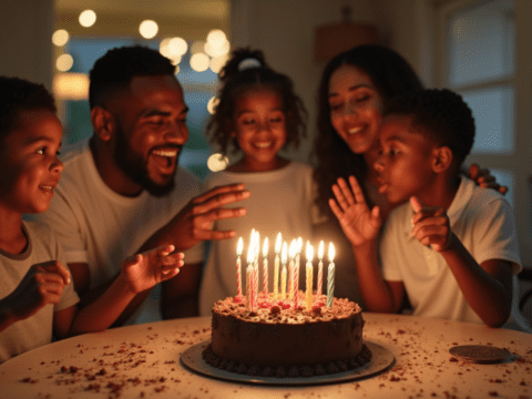 family birthday celebration cake candles