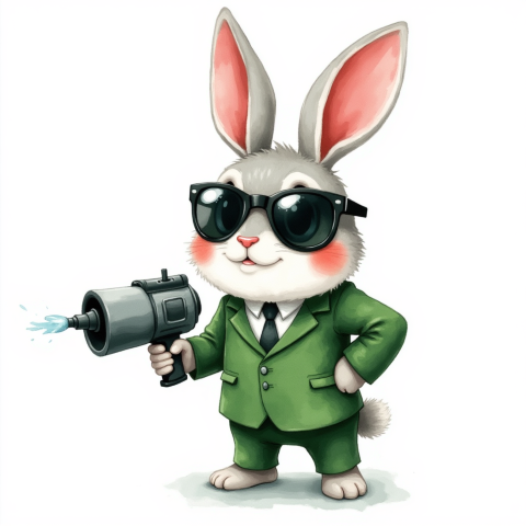 ← free clipart illustration of a cute rabbit in suit holding toy gun (3)