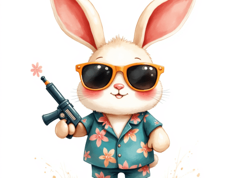 free clipart illustration of a cute rabbit in suit holding toy gun (4)