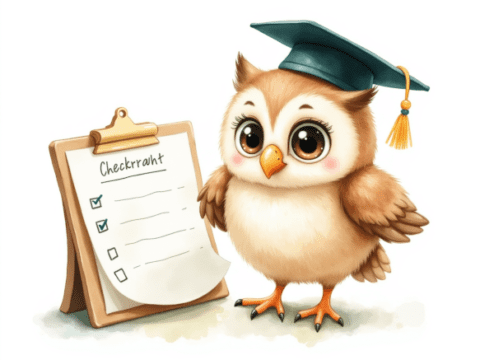 Free clipart illustration of a wise owl standing beside a back to school checklist (8)