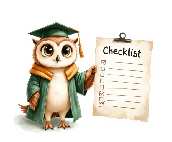Free clipart illustration of a wise owl standing beside a back to school checklist (10)
