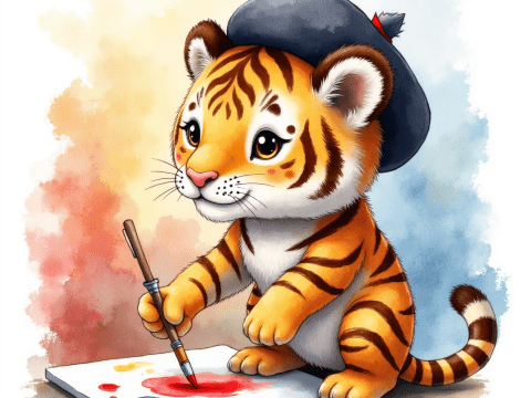 free clipart illustration of a tiger watering flower garden (6)