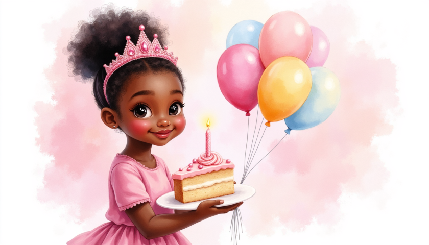 ← free clipart illustration of a black happy birthday girl with cake (11)
