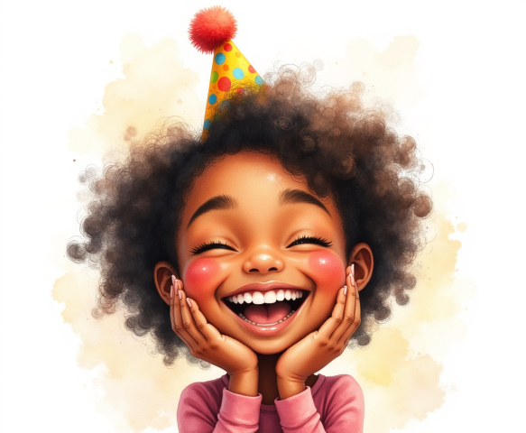 free clipart illustration of a cute black birthday girl laughing (1)