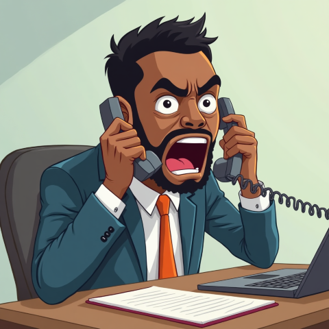 free clipart illustration of a black boss screaming into a phone (3)