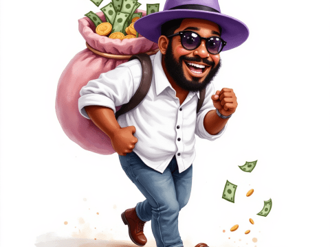 free clipart illustration of a black male carrying a big sack of money (3)