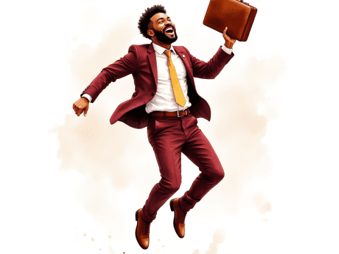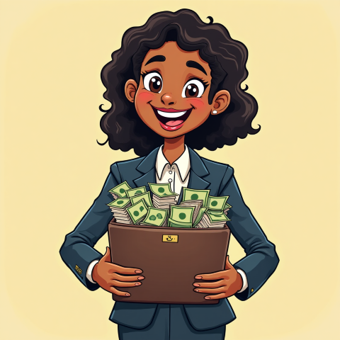 free clipart illustration of a black business woman holding bag with cash and documents (1)