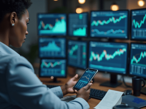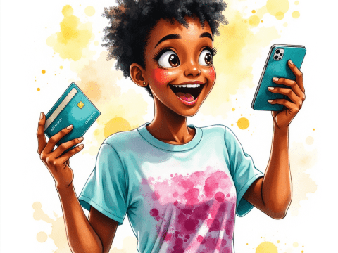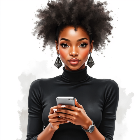 Free clipart illustration of a black female doing online banking with cellphone (10)