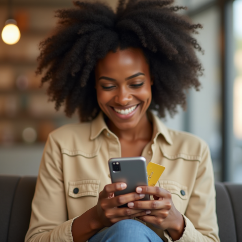 Free clipart illustration of a black female doing online banking with cellphone (15)
