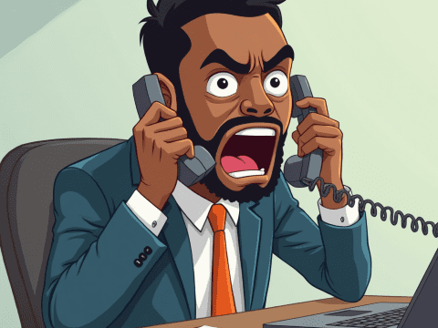 free clipart illustration of a black boss screaming into a phone (3)