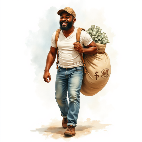 free clipart illustration of a black male carrying a big sack of money (8)