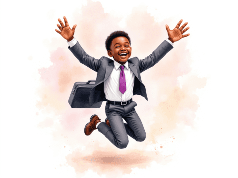 free clipart illustration of a happy black business man jumping with briefcase (9)
