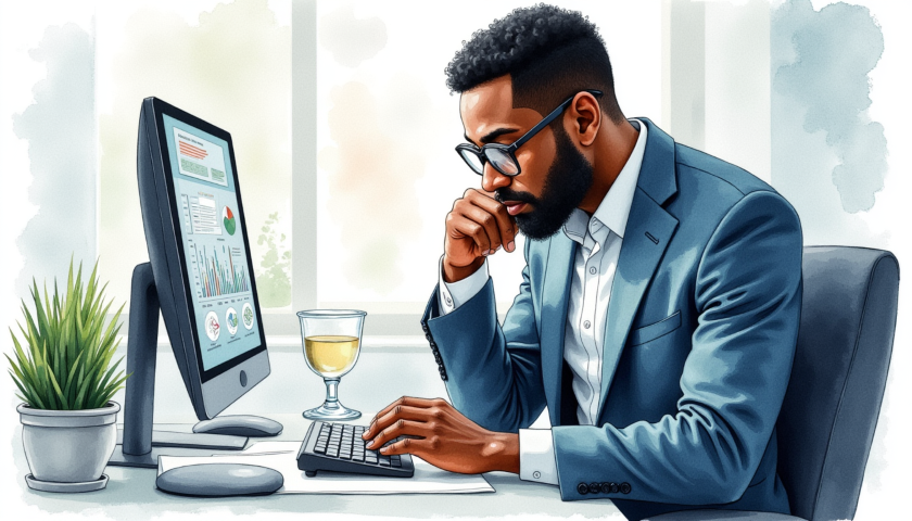 Free clipart illustration of a black stock market analyst viewing trade trend on computer (6)