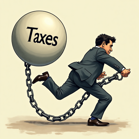 free clipart illustration of a businessman chained to a ball labelled taxes (1)