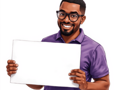 free clipart illustration of black business marketer holding a blank sign (2)
