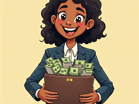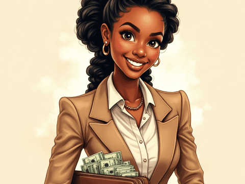 free clipart illustration of a black business woman holding bag with cash and documents (1)