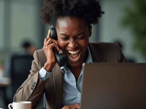 free clipart stock photo of a black business woman screaming into a phone (4)