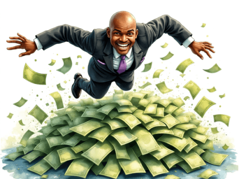 free clipart illustration of a black business rolling in a pile of cash money (4)
