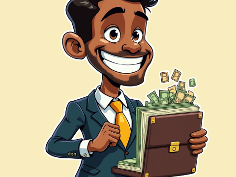 free clipart illustration of black business person holding a bag filled with money (12)