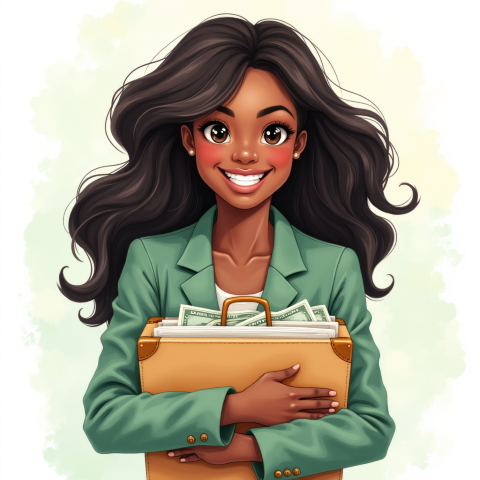 free clipart illustration of black business woman carrying a bag with money (5)