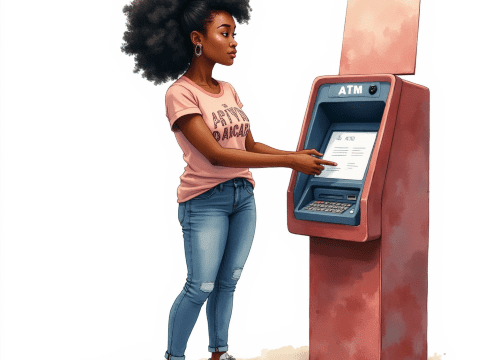 Free clipart illustration of a black female getting money from an ATM machine (10)