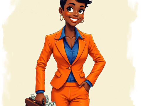 free clipart illustration of black business woman carrying a bag with money (3)