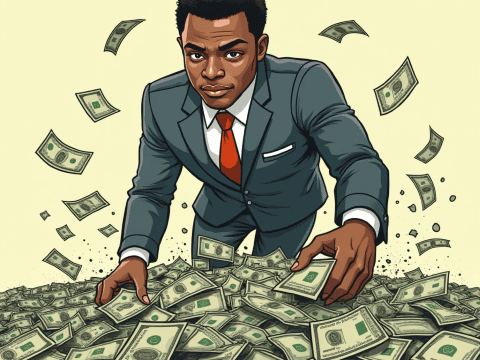 free clipart illustration of a black business rolling in a pile of cash money (1)