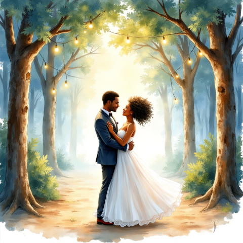 Free clipart illustration of a black couple gazing lovingly at each other on wedding day (2)
