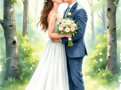 Free clipart illustration of a black couple gazing lovingly at each other on wedding day (8)