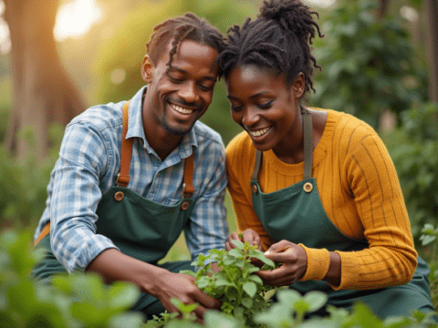 free clipart illustration of black couple gardening at home (7)