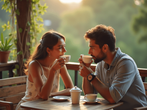 free clipart illustration of couple enjoying tea outdoors (3)