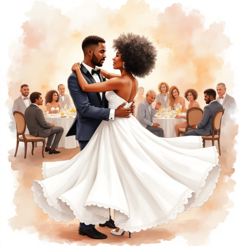 Free clipart illustration of black bride and groom embrace on wedding day (6)