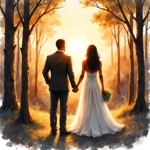 Free clipart illustration of a black couple gazing lovingly at each other on wedding day (6)